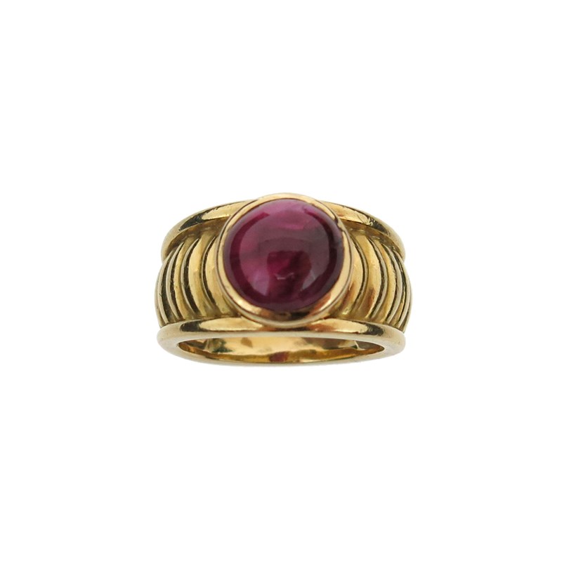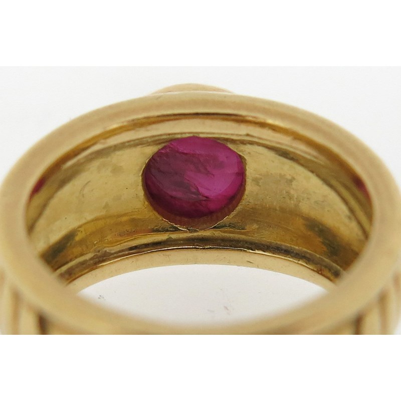 A cabochon ruby solitaire ring
