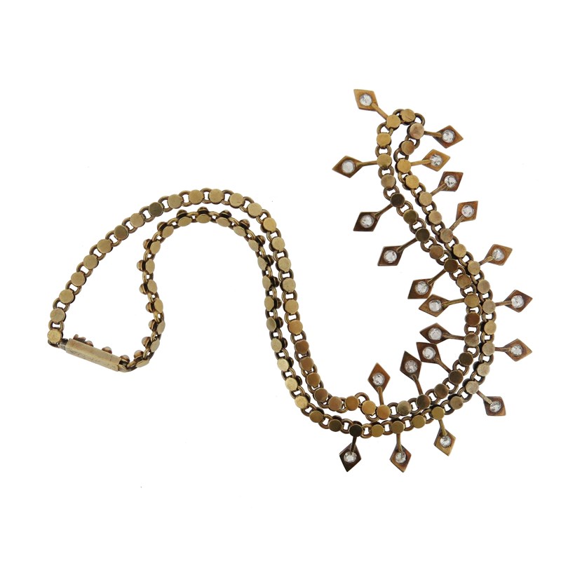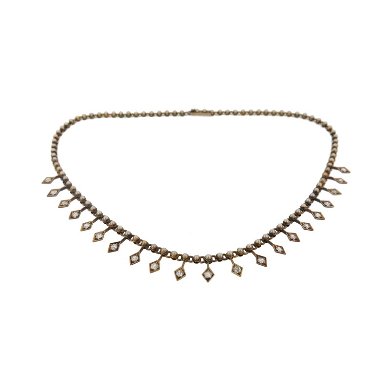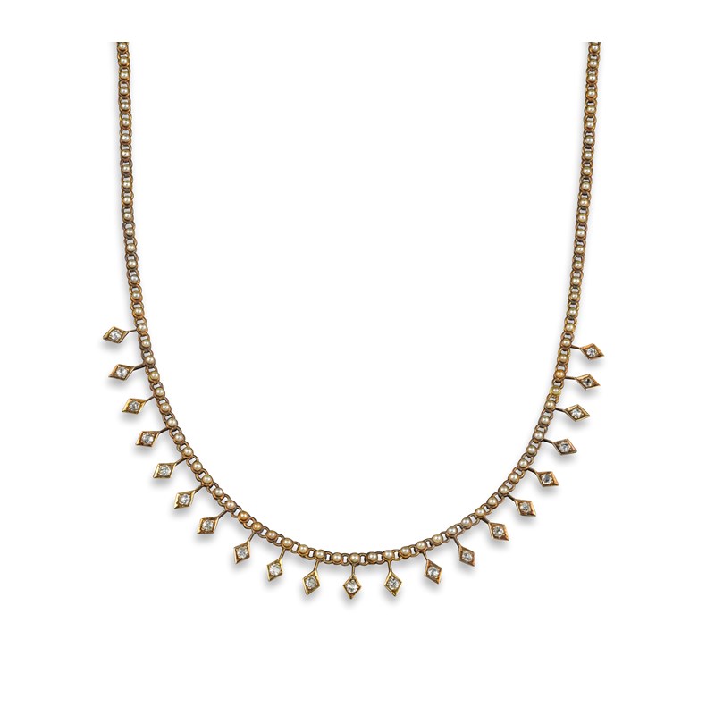 An early 20th century seed pearl and diamond fringe necklace
