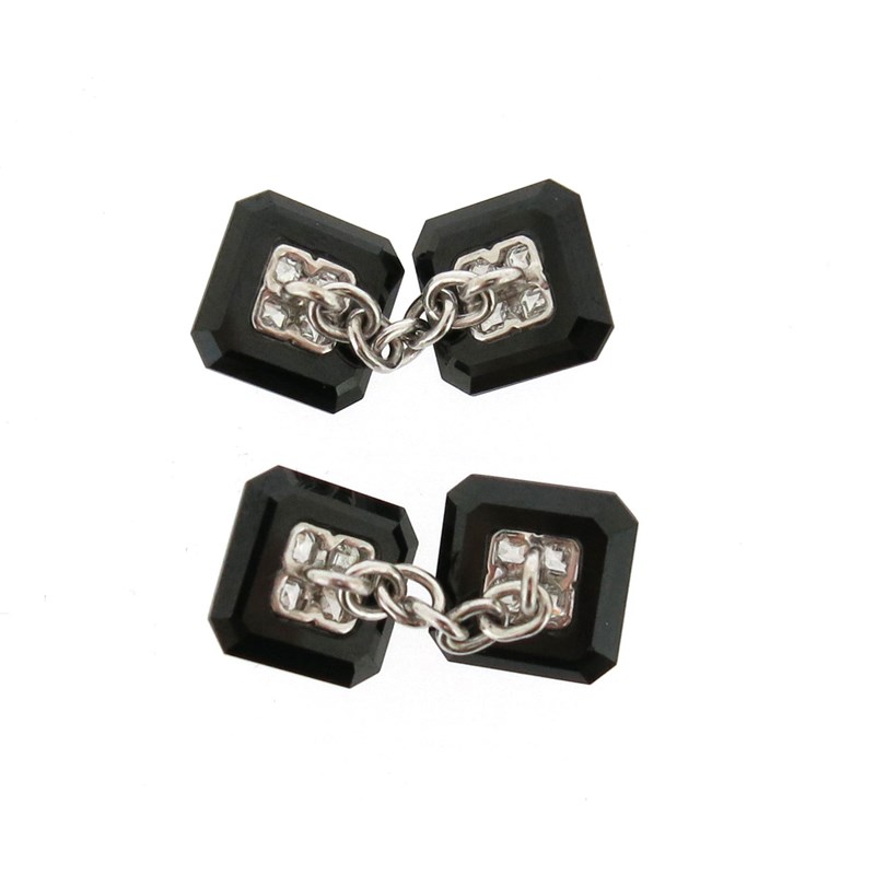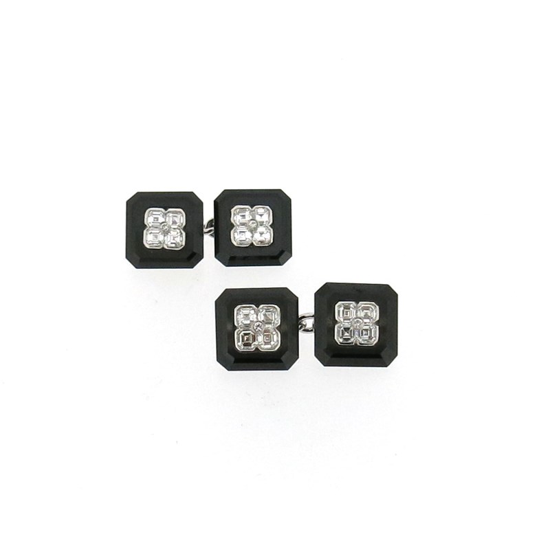 A pair of diamond and onyx cufflinks