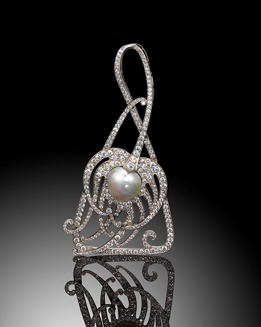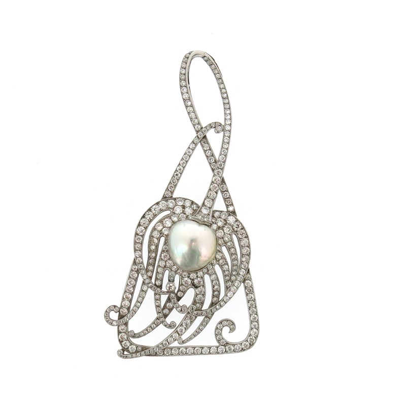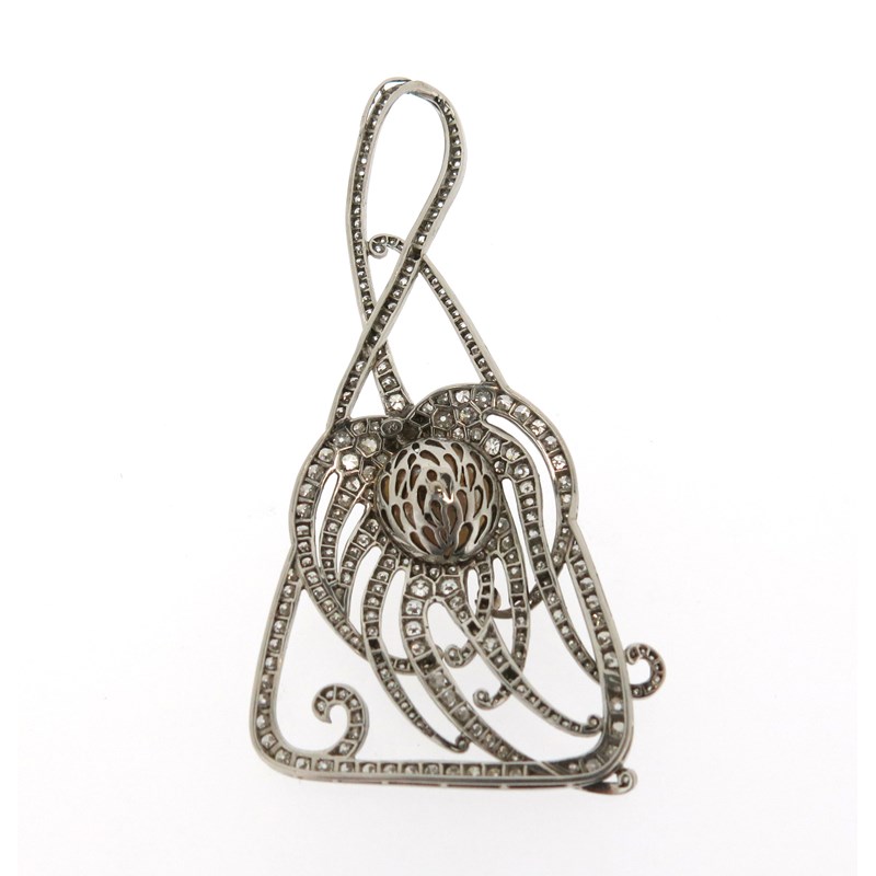 An Art Nouveau natural pearl and diamond pendant by Tiffany & Co