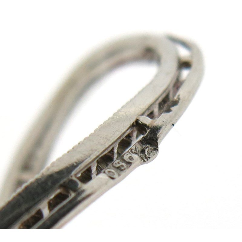 An Art Nouveau natural pearl and diamond pendant by Tiffany & Co, designed as a stylised peacock's feather with a central pearl within pierced millegrain-set diamond scrolls, set in platinum, signed Tiffany & Co with platinum marks, 9cm high