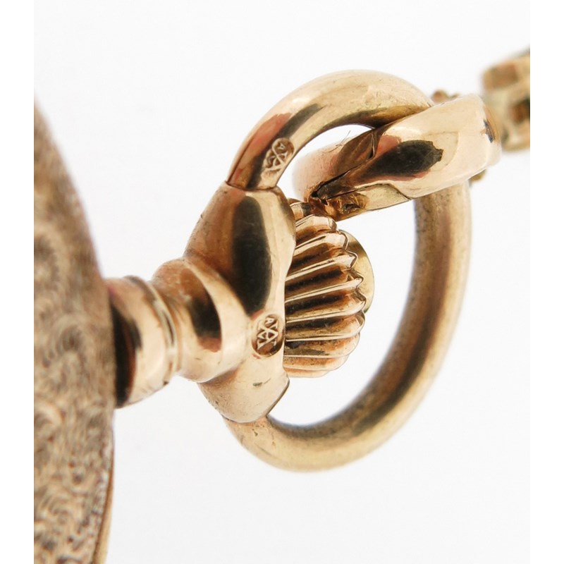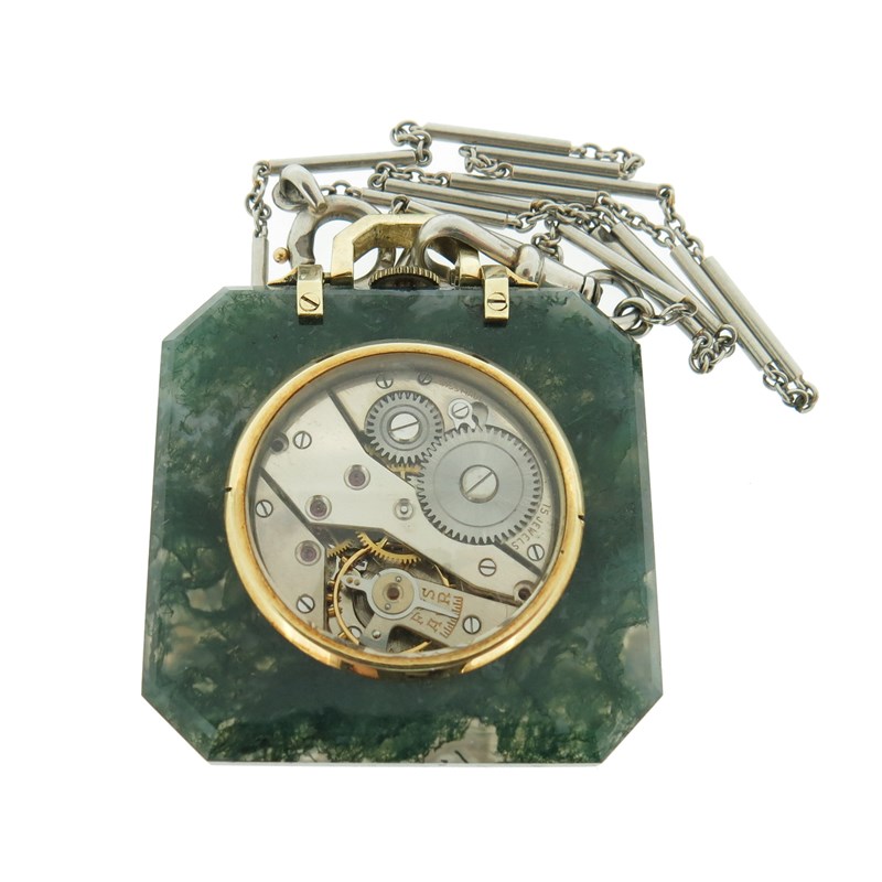 An early 20th century moss agate and gold fob watch