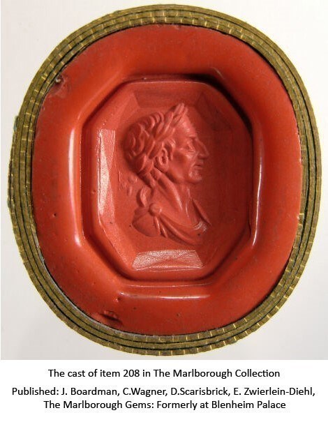 Published: J. Boardman, C.Wagner, D.Scarisbrick, E. Zwierlein-Diehl, The Marlborough Gems: Formerly at Blenheim Palace, no 208.