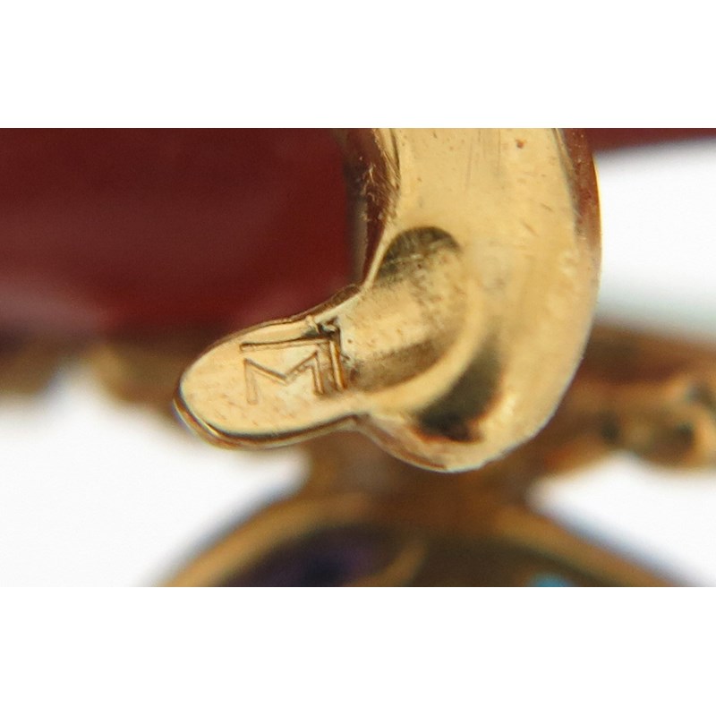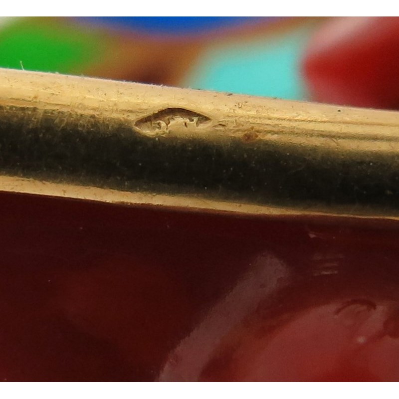A French coral and enamel gold brooch