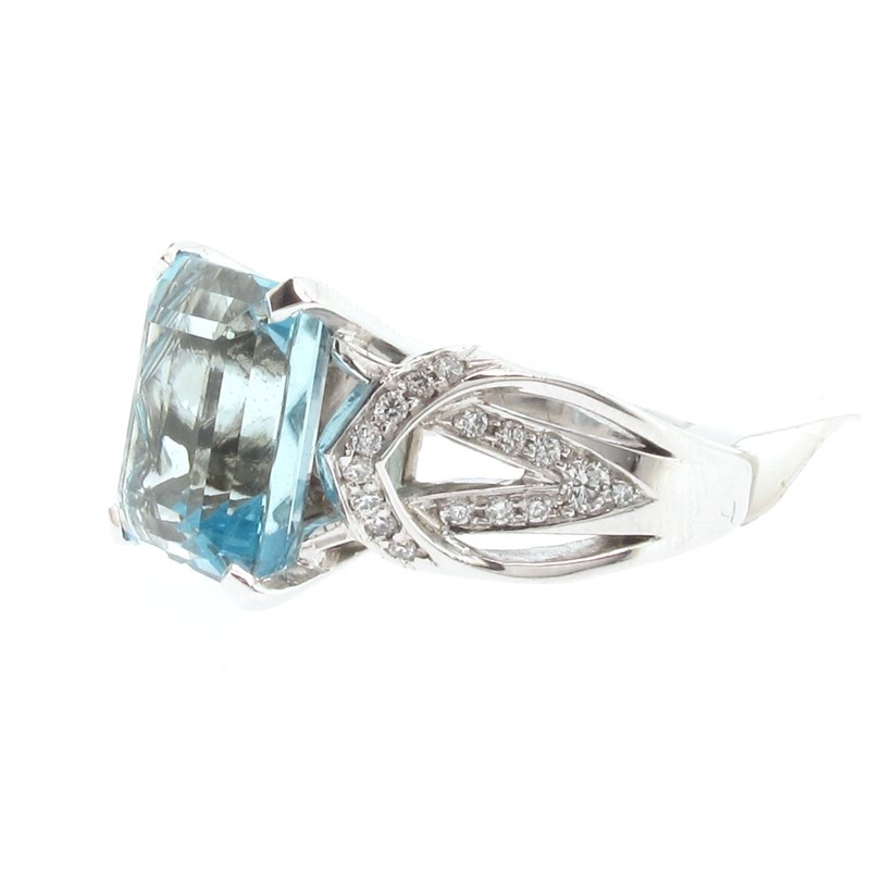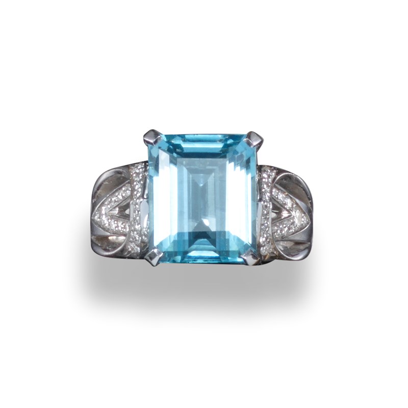 An aquamarine and diamond ring