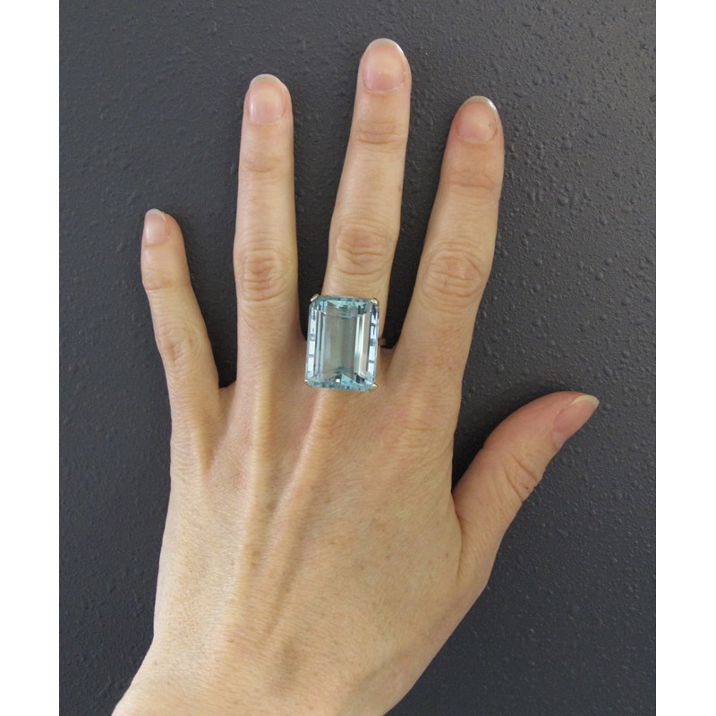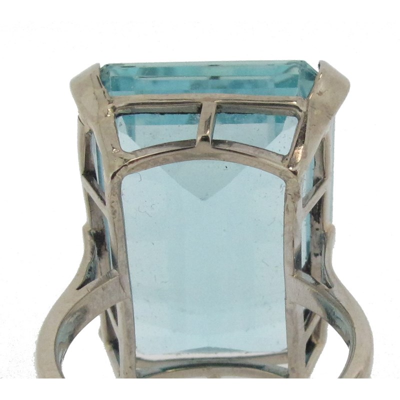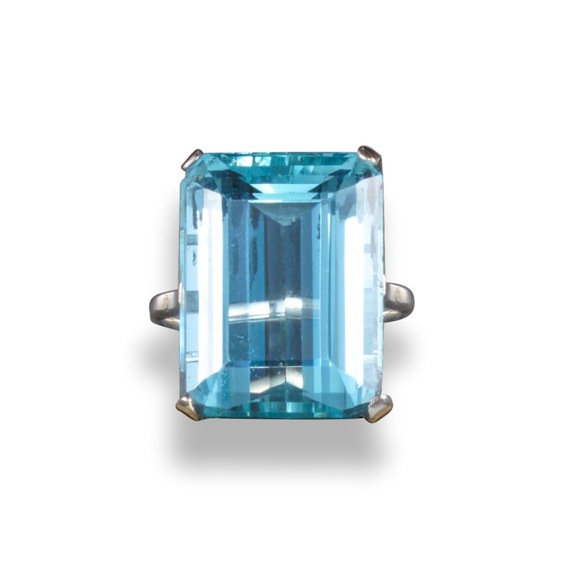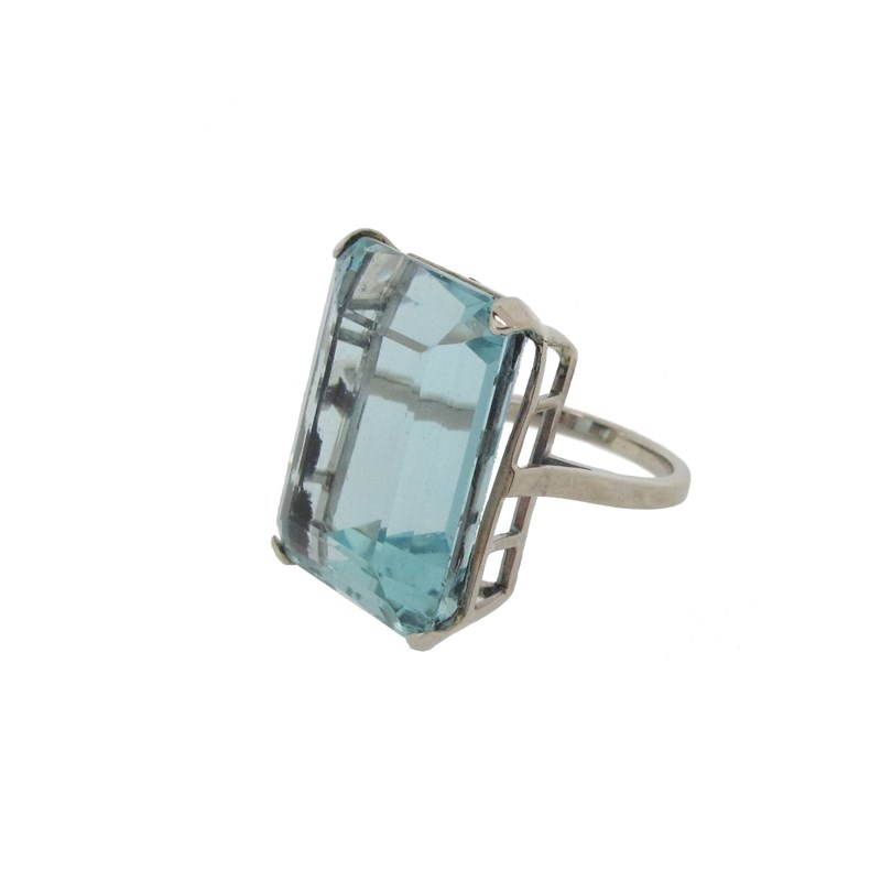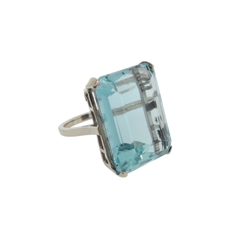An aquamarine solitaire ring, the rectangular-shaped aquamarine set in white gold, size L 1/2