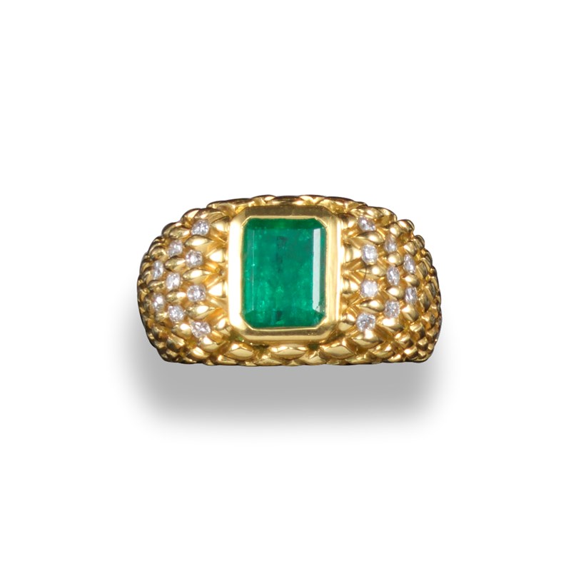 A French emerald and diamond bombé ring