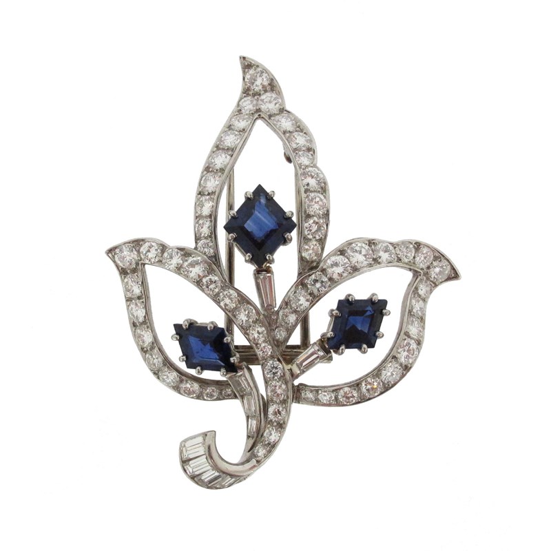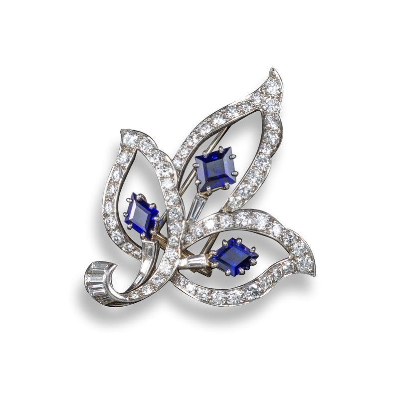 A sapphire and diamond leaf brooch by Van Cleef & Arpels