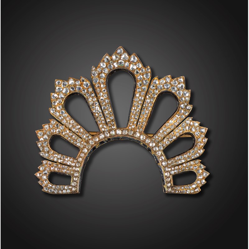 A late 19th century coronet style diamond and enamel brooch