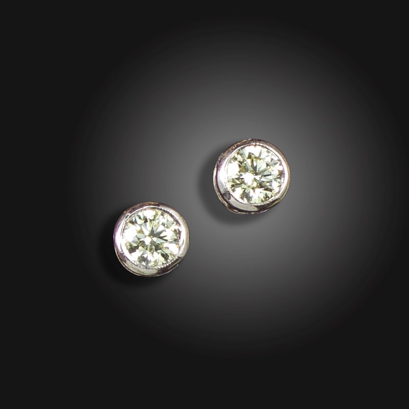 A pair of diamond stud earrings, the round brilliant-cut diamonds are rubover-set in white gold, diamonds 0.65cts total approximately, post fittings