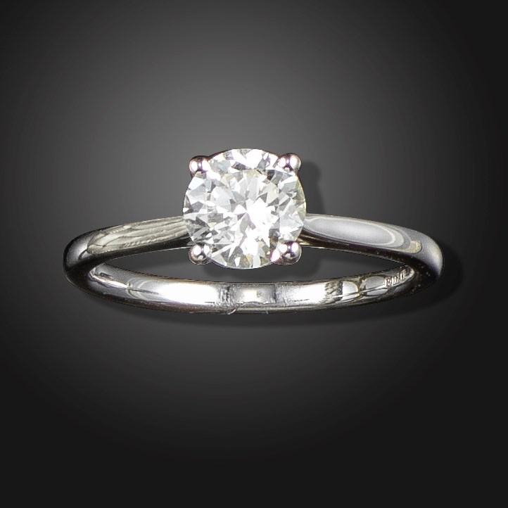 A diamond solitaire ring, the round brilliant-cut diamond weighs 0.98cts, claw-set in white gold, size N