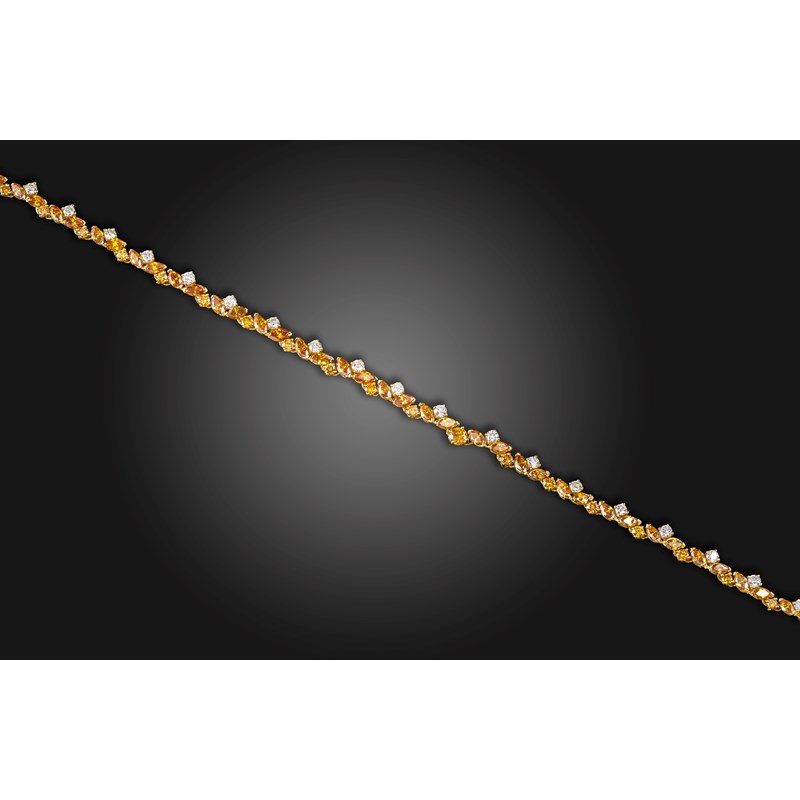 A fancy-coloured diamond necklace, set with round brilliant-cut and marquise-shaped fancy diamonds and accented with white diamonds in yellow gold, 40cm long