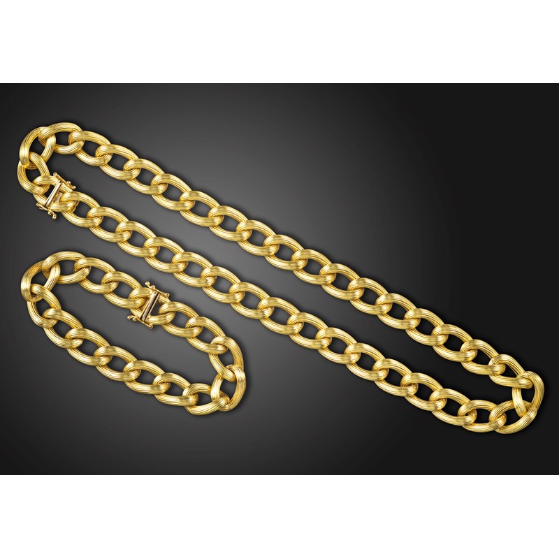 A fluted gold curblink necklace, with matching bracelet, necklace 46cm long, bracelet 20cm long, total weight 76g