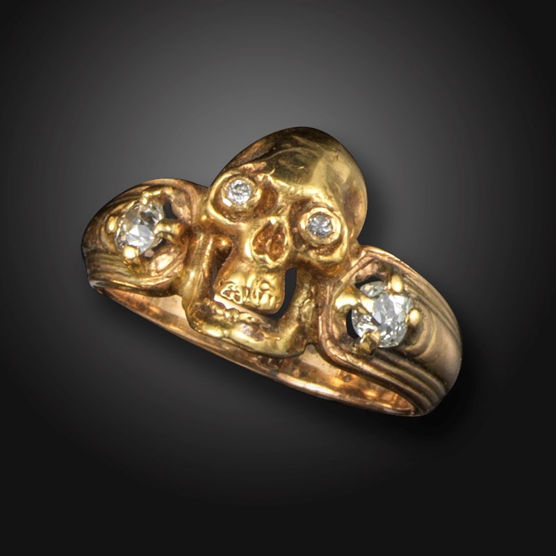 A diamond-set skull ring