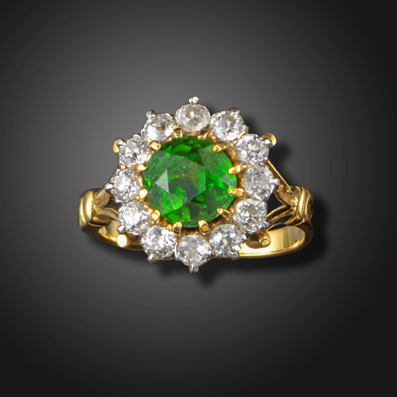 A demantoid garnet and diamond cluster ring