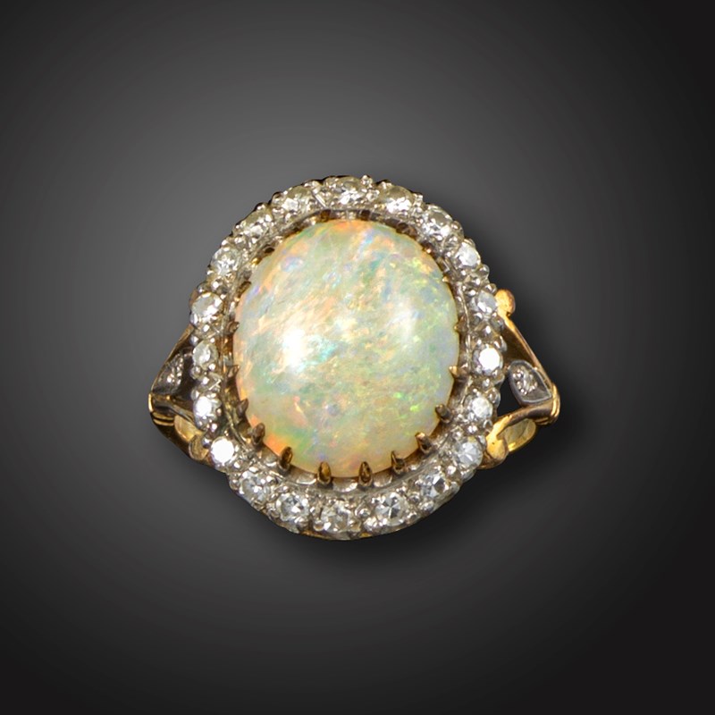 An opal and diamond cluster ring