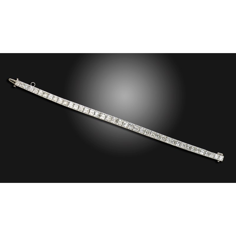 A slightly graduated diamond line bracelet, c.1925, the square-shaped diamonds channel-set in platinum, 17.5cm long