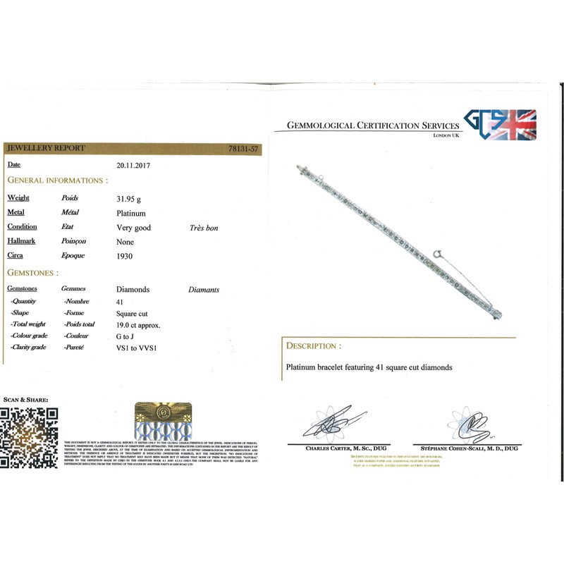 Accompanied by report number 78131-57 dated 20 November 2017 from GCS stating that the square-cut diamonds weigh approximately 19.00cts total and range from G-J colour and VS1 - VVS1 clarity.