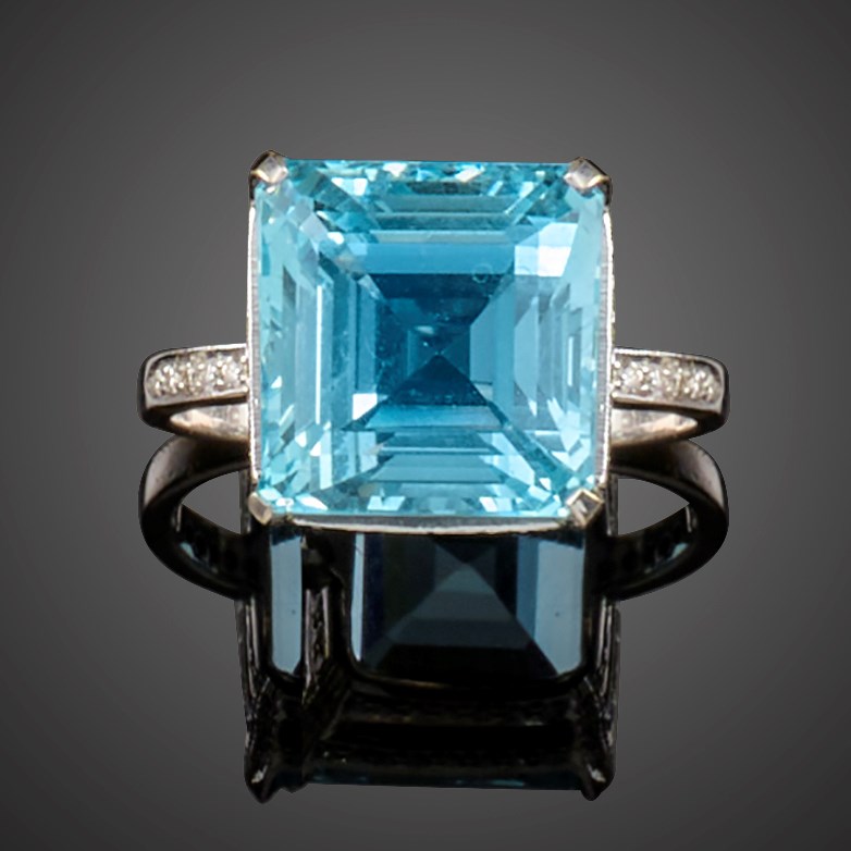 An aquamarine and diamond ring