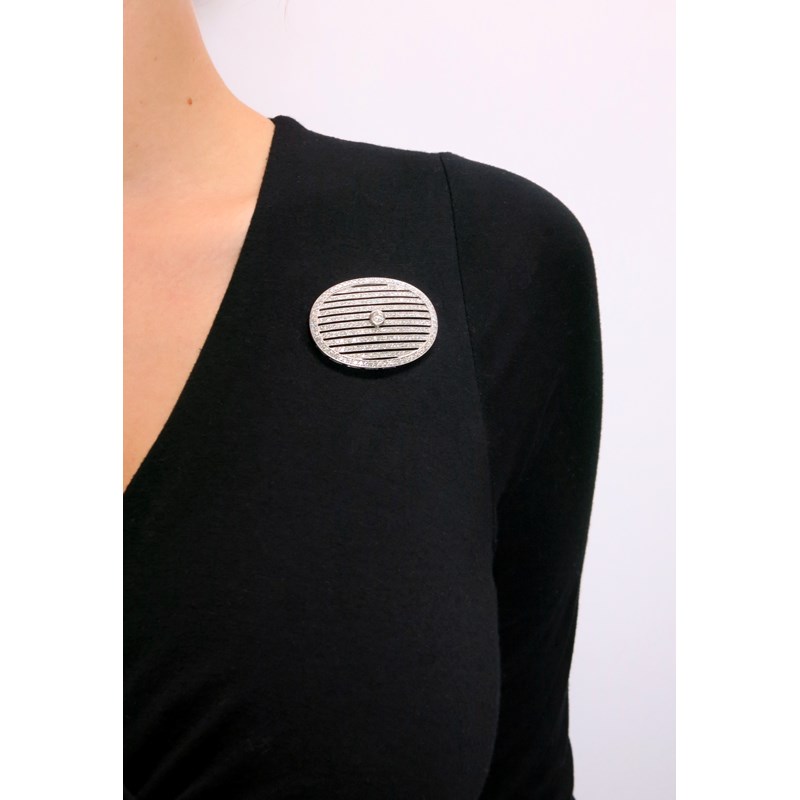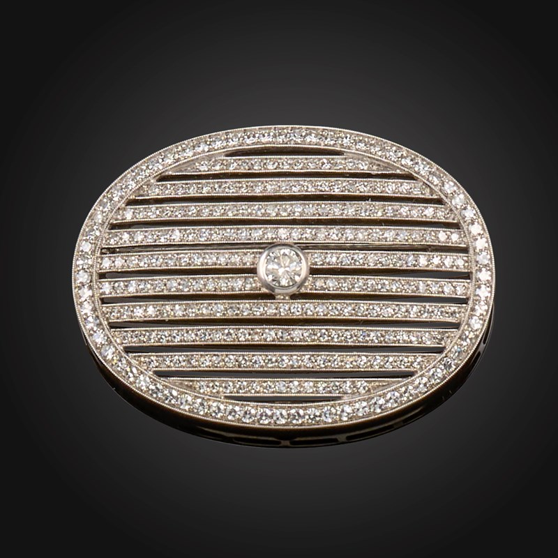 A diamond-set oval brooch