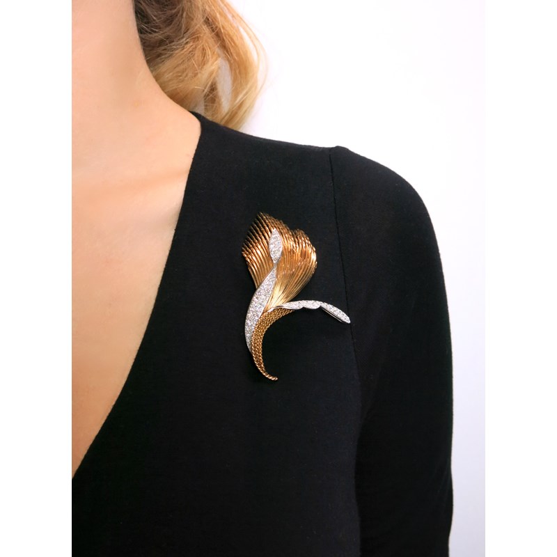 A diamond-set gold foliate brooch by Sterlé