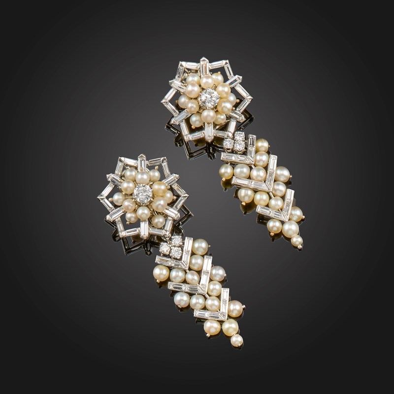 A pair of diamond and seed pearl earrings by Van Cleef & Arpels