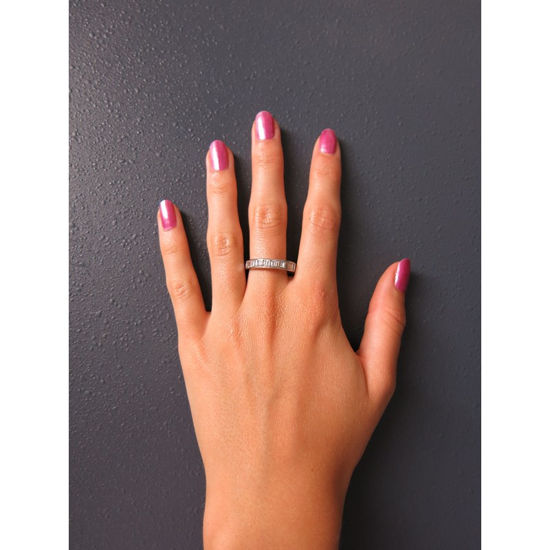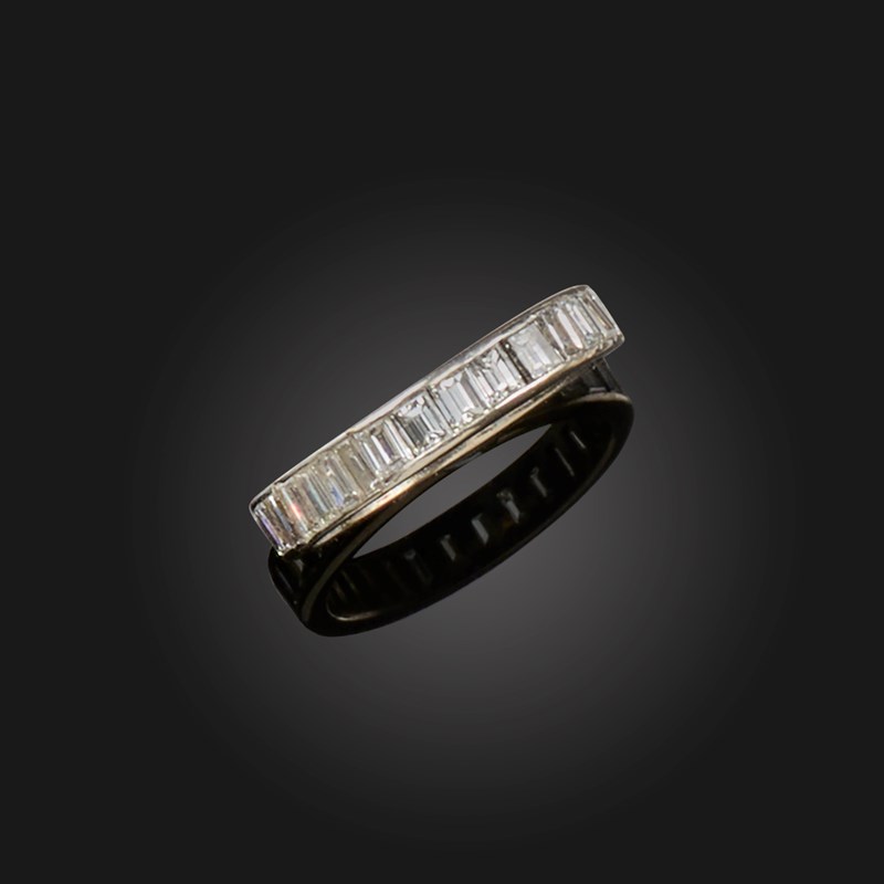 A diamond eternity ring, set with baguette-shaped diamonds in platinum, size T