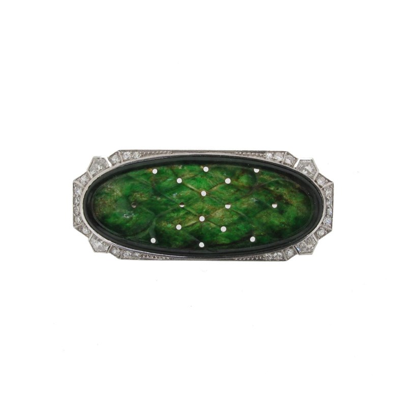 A jade and diamond set brooch