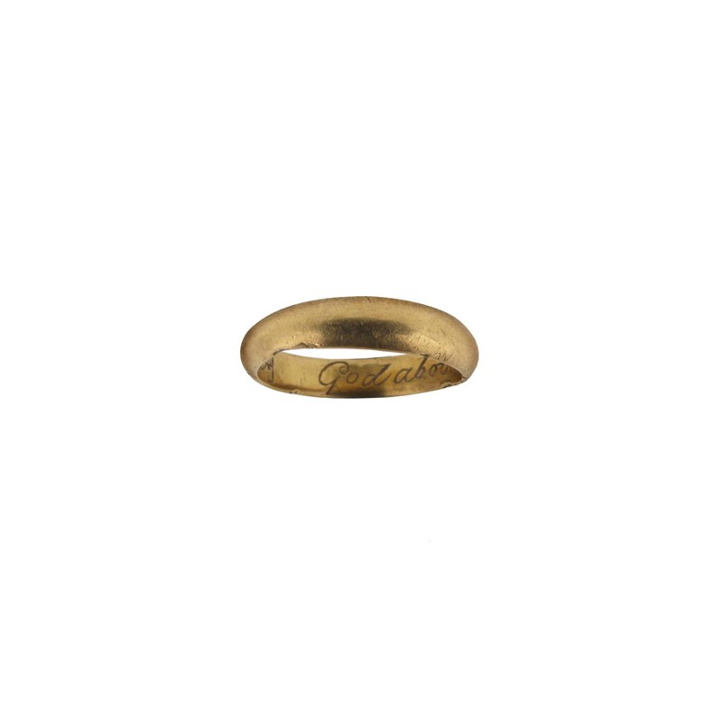 A gold posy ring, engraved to the interior 'God above increase our love' 5g. Size N.