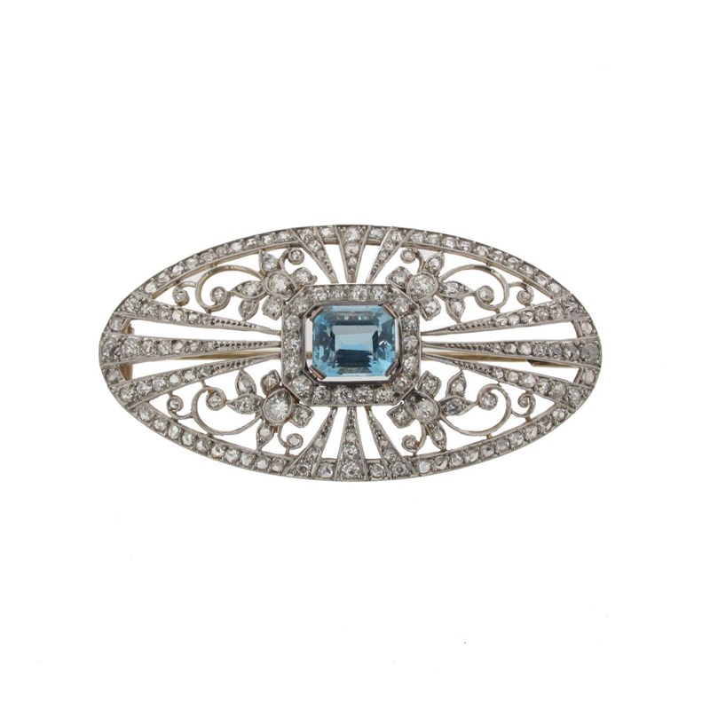 An aquamarine and diamond brooch