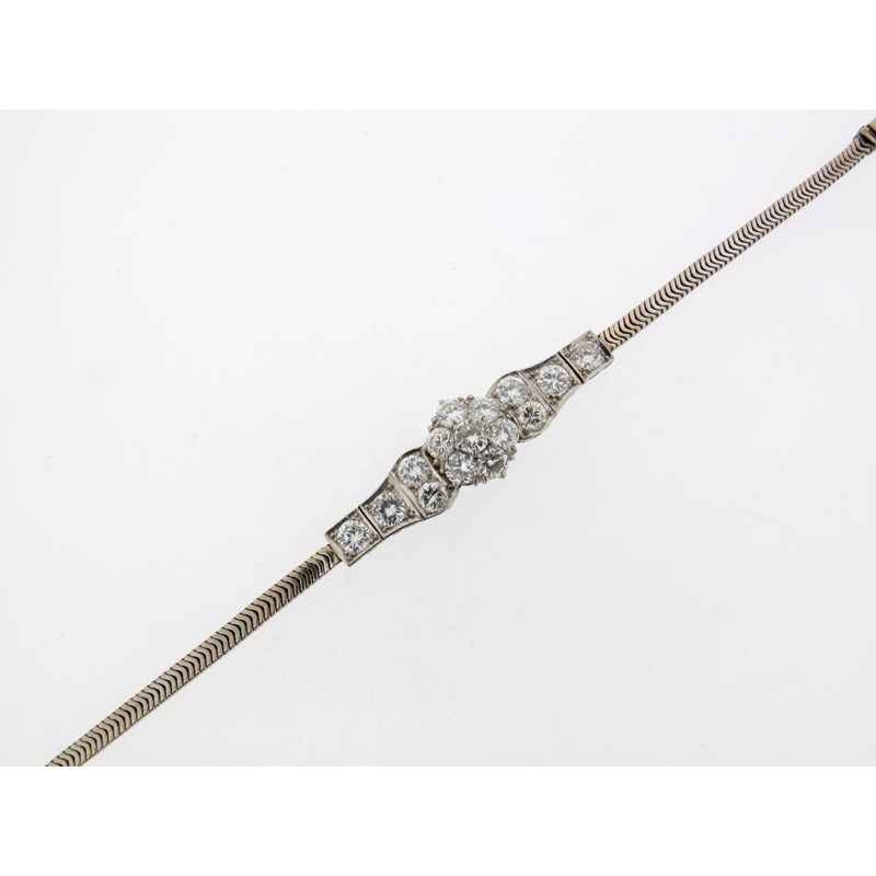 A diamond bracelet, centred with a cluster of seven round brilliant cut diamonds with a further four round brilliant cut diamonds to each shoulder. Set in white gold with white gold chevron link band. 16.5cm long.