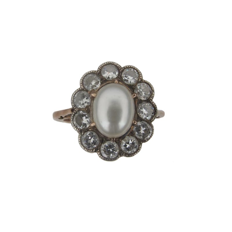 A pearl and diamond cluster ring