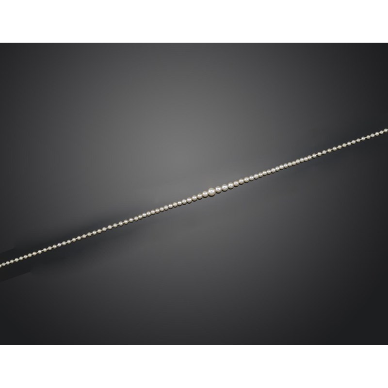 With report number 05671 dated 18th May 2012 from the Gem and Pearl laboratory stating that the pearls graduate from 1.7mm to 5.2-5.3mm and all are natural saltwater pearls.