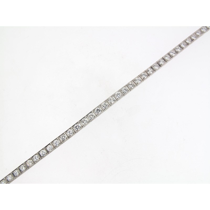 A diamond line bracelet, the circular cut diamonds are millegrain set in square platinum collets. 17.5cm.