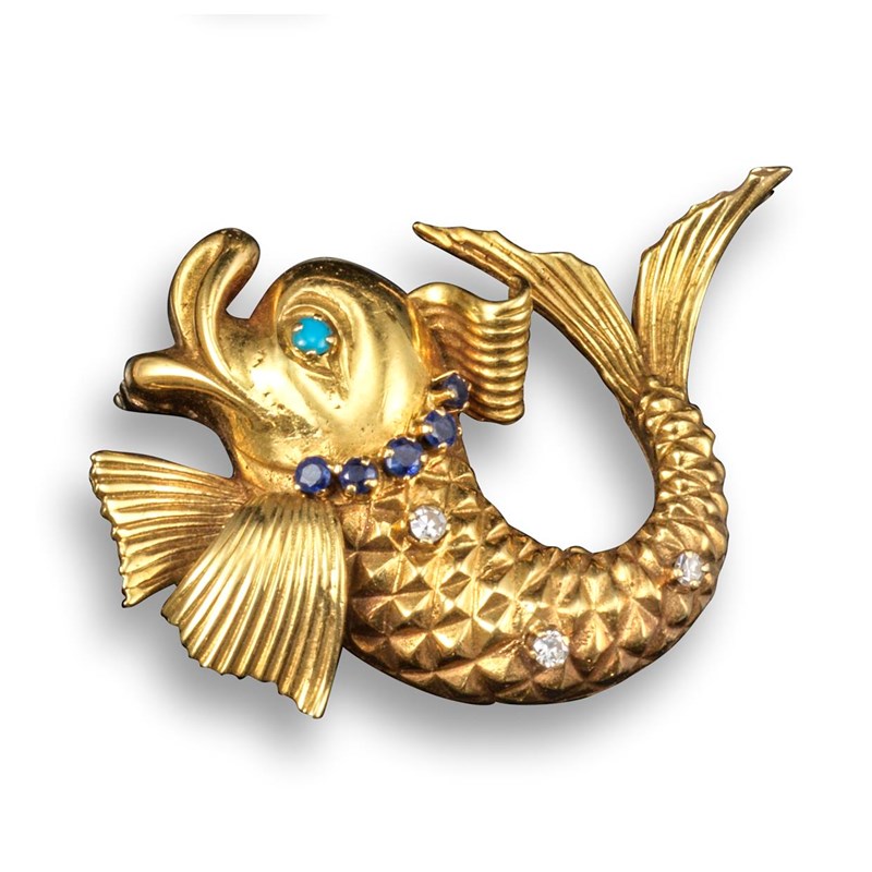 A gem-set gold fish brooch by Ben Rosenfeld