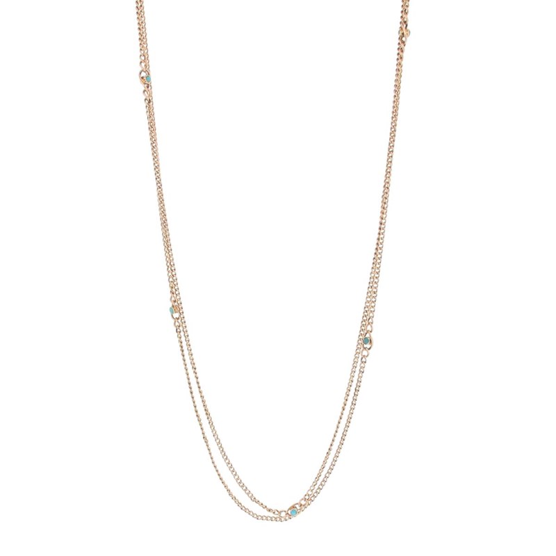 A 19th-century gold fine curb-link longuard chain mounted with turquoise cabochons, 140cm long.