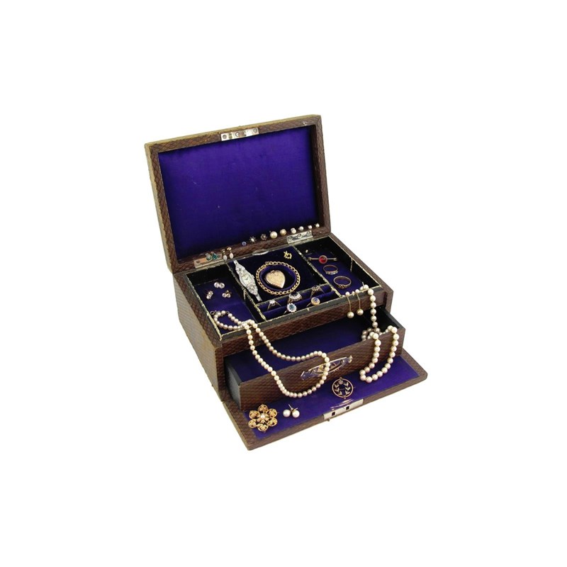A jewellery box containing various items of jewellery etc. Including an Art Deco lady's platinum...