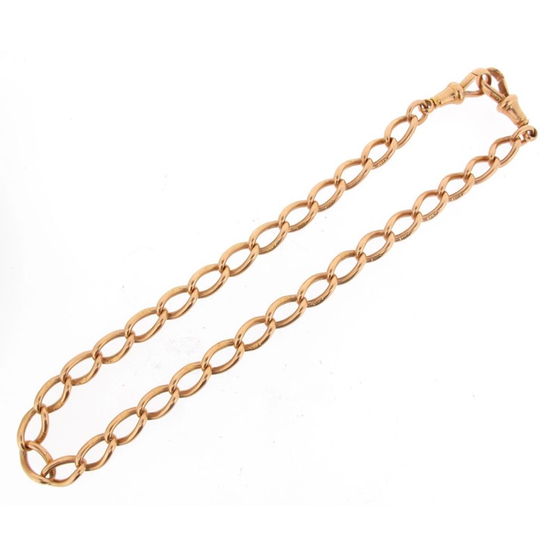 An 18ct gold watch chain with two gold swivel clips