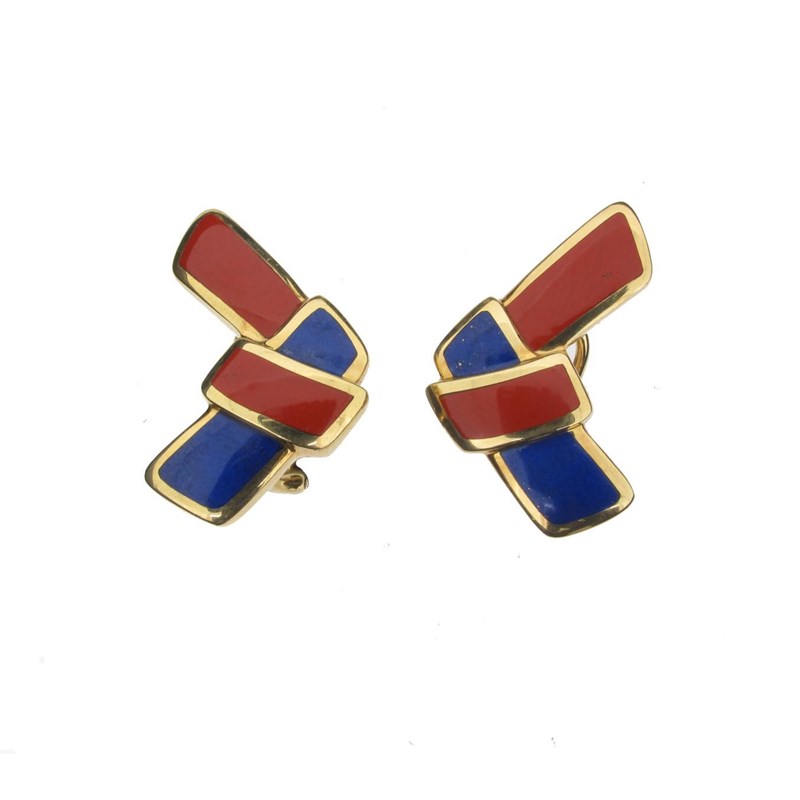 Tiffany. A pair of gold tied knot earrings. With enamel decoration. 3cm wide.