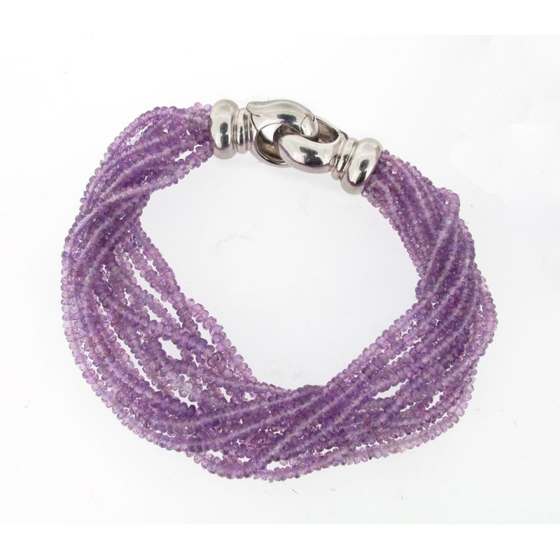 An attractive lilac sapphire bead bracelet. Comprising eleven strands of faceted sapphires with silver clasp.