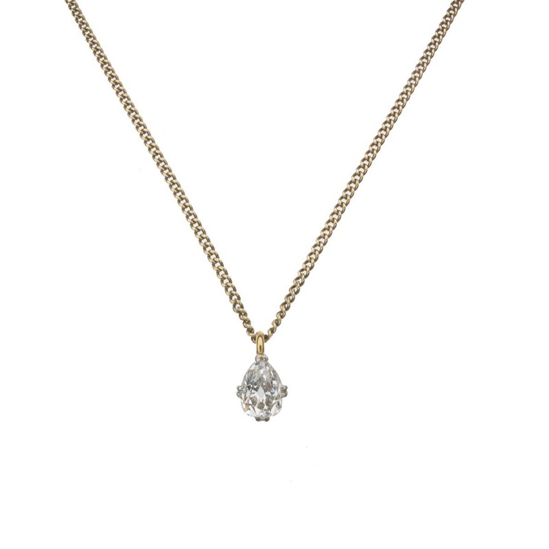 A pear shaped diamond set gold pendant
