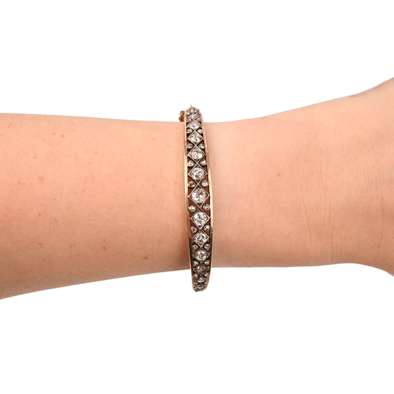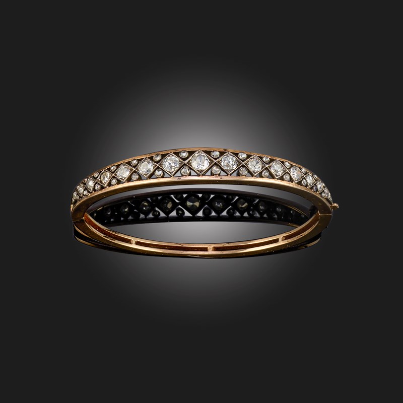 A VICTORIAN DIAMOND AND GOLD BANGLE
