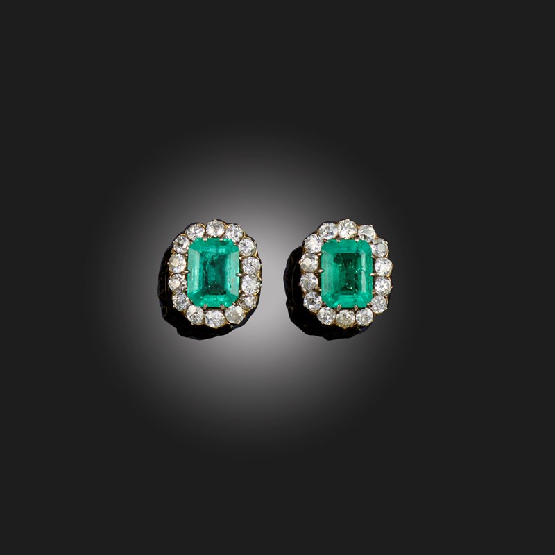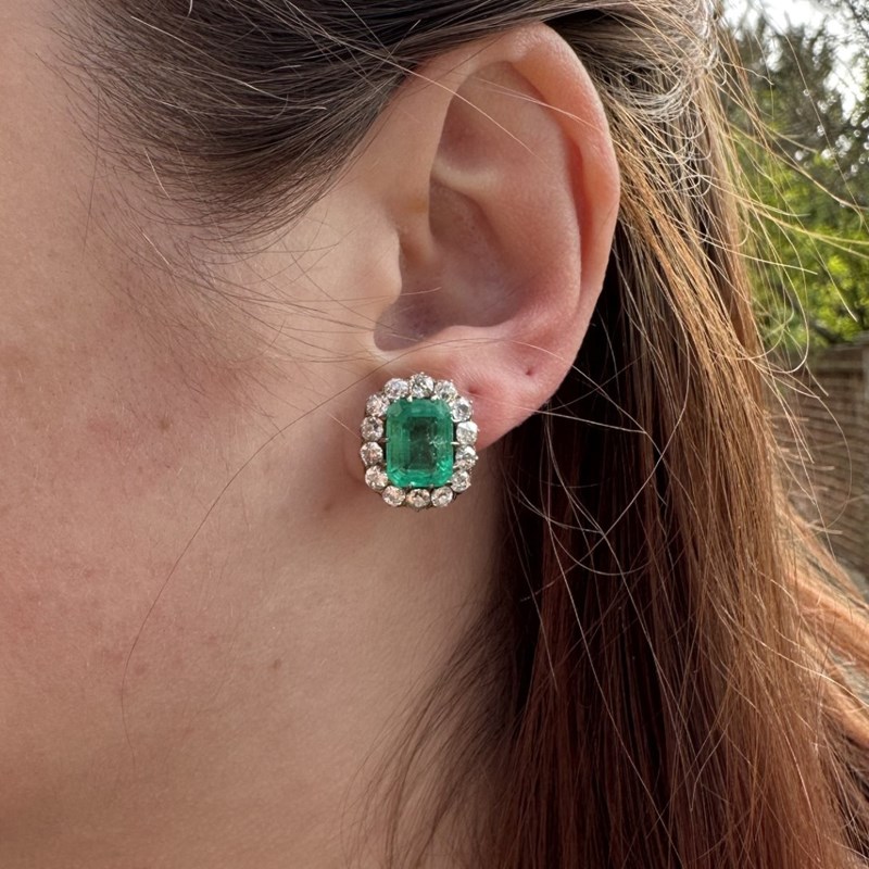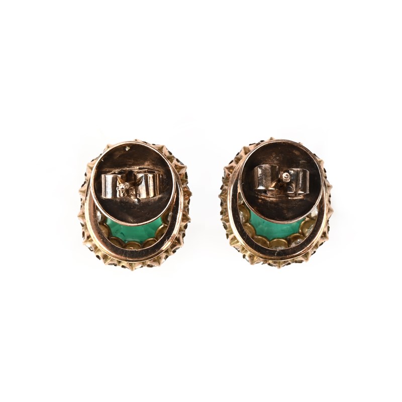 A PAIR OF EMERALD AND DIAMOND CLUSTER EARRINGS