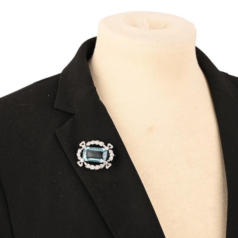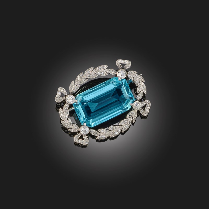 A BELLE ÉPOQUE AQUAMARINE AND DIAMOND BROOCH