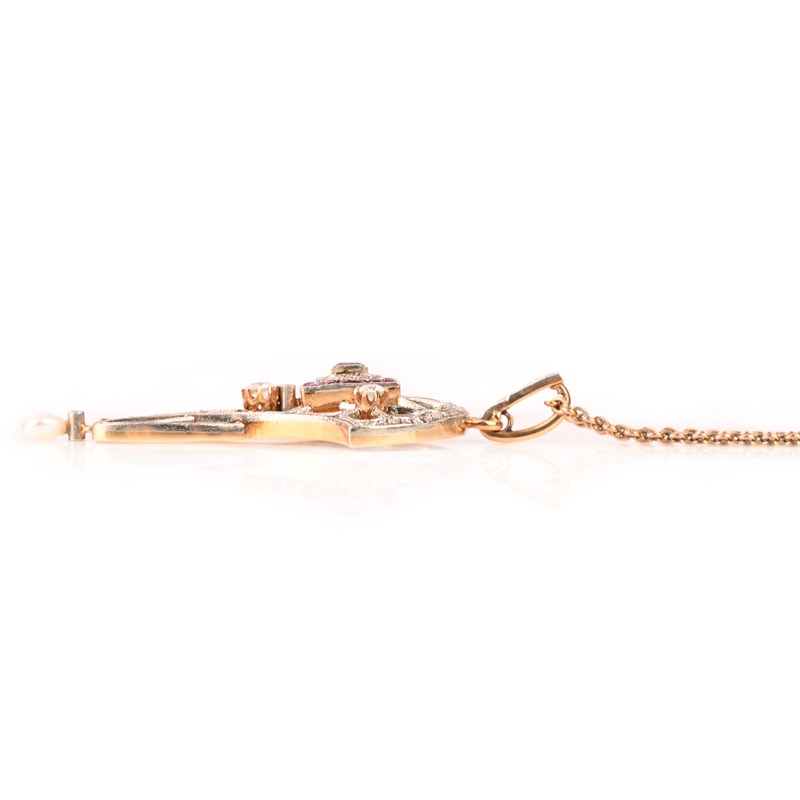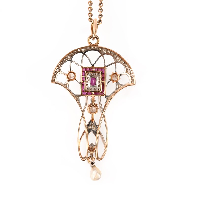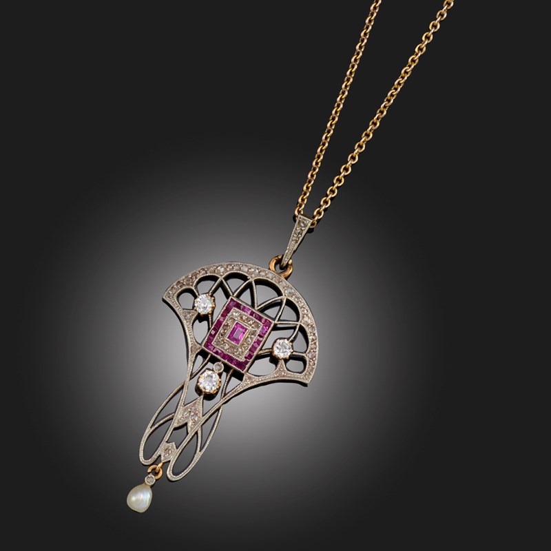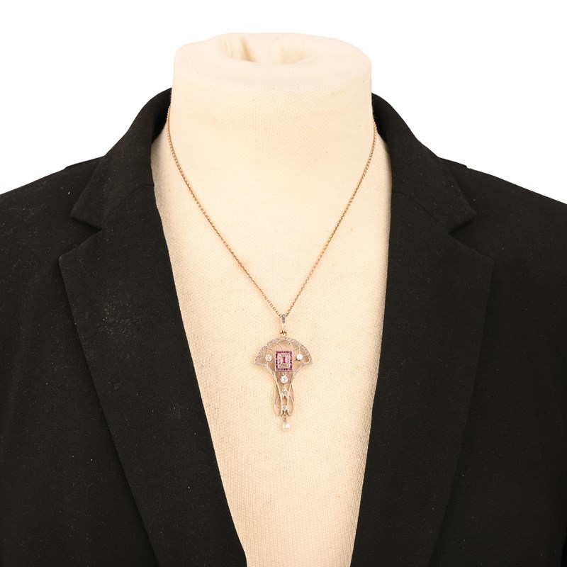 AN ART NOUVEAU RUBY AND DIAMOND PENDANT