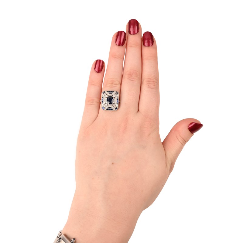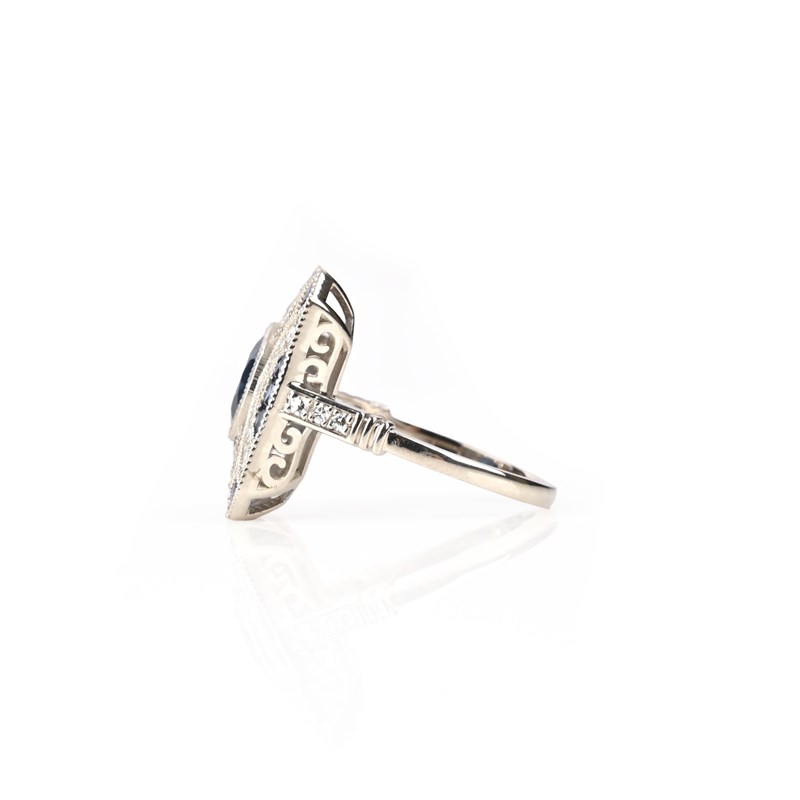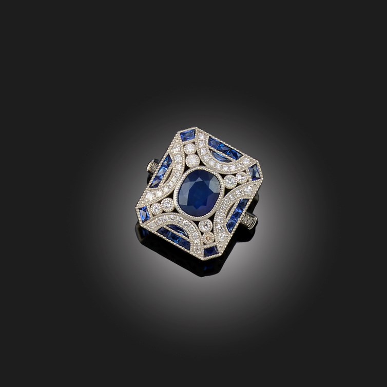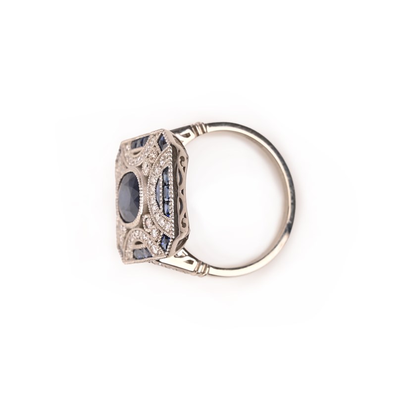 AN ART DECO STYLE SAPPHIRE AND DIAMOND RING