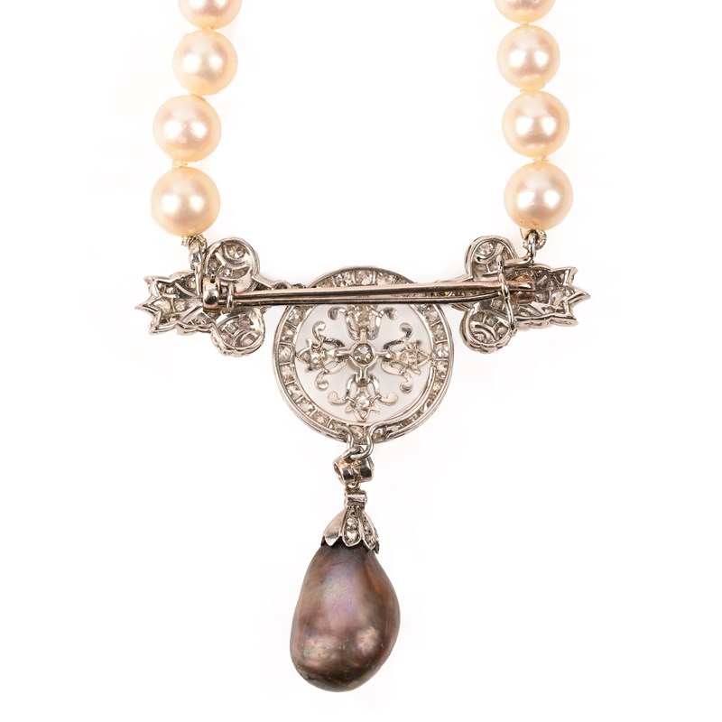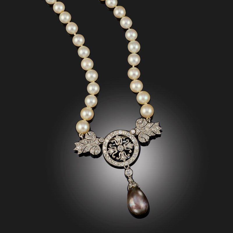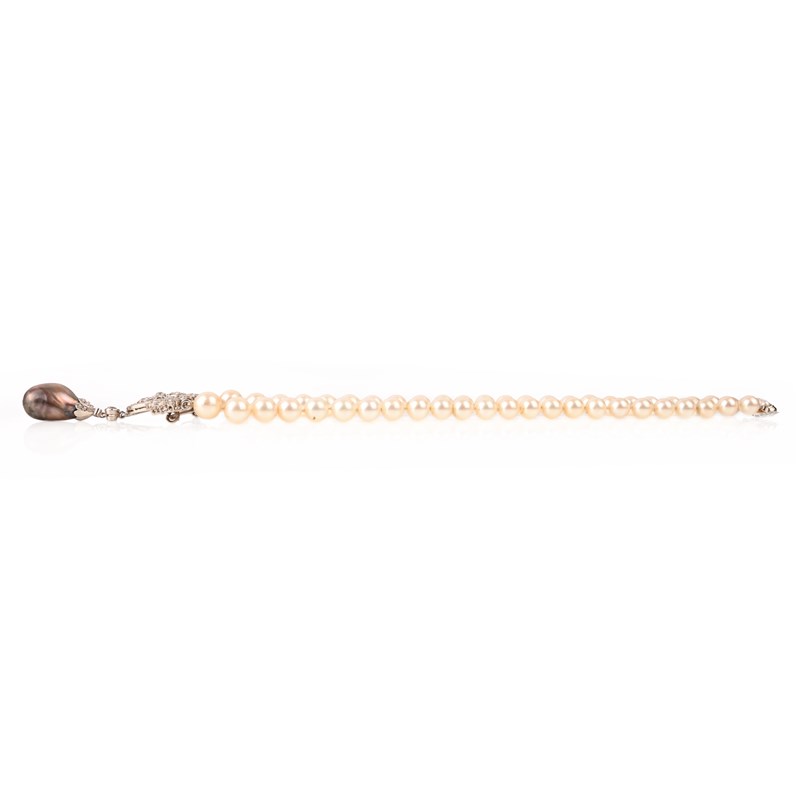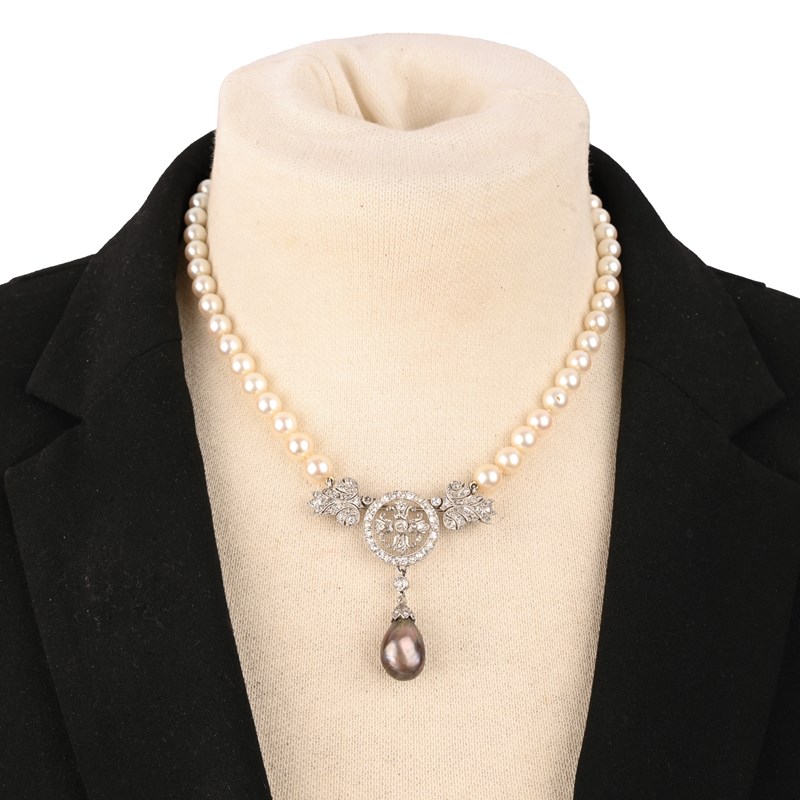 A CULTURED PEARL, NATURAL PEARL AND DIAMOND NECKLACE