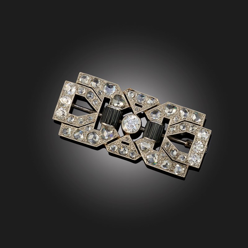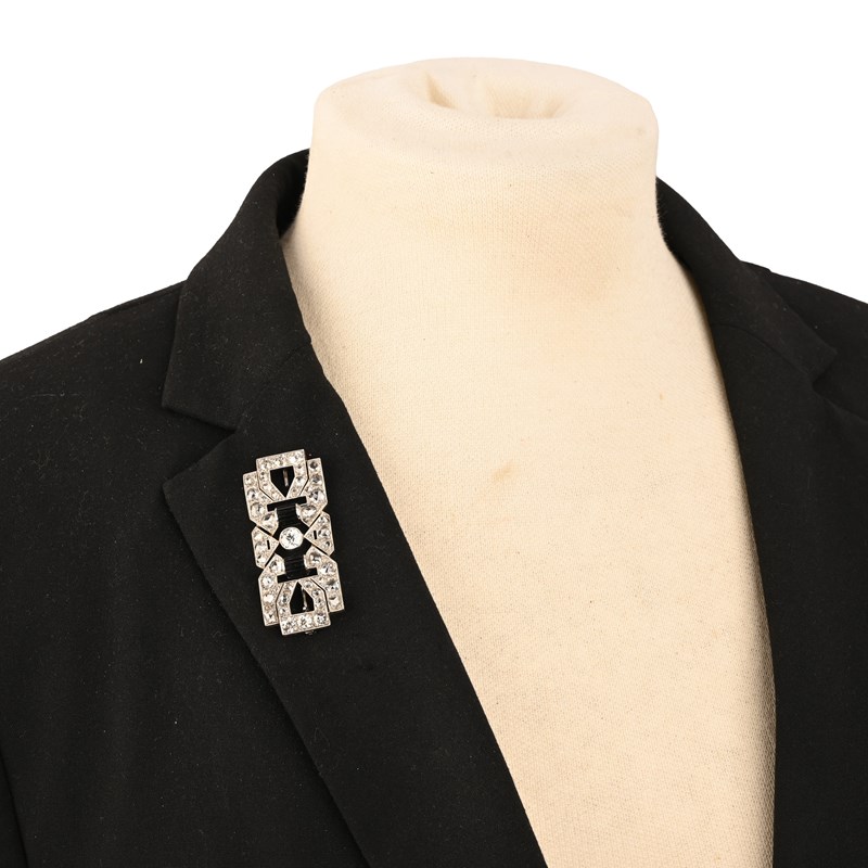 A FRENCH ART DECO ONYX AND DIAMOND BROOCH