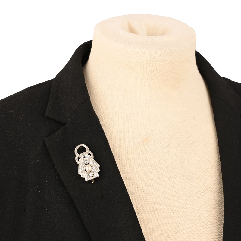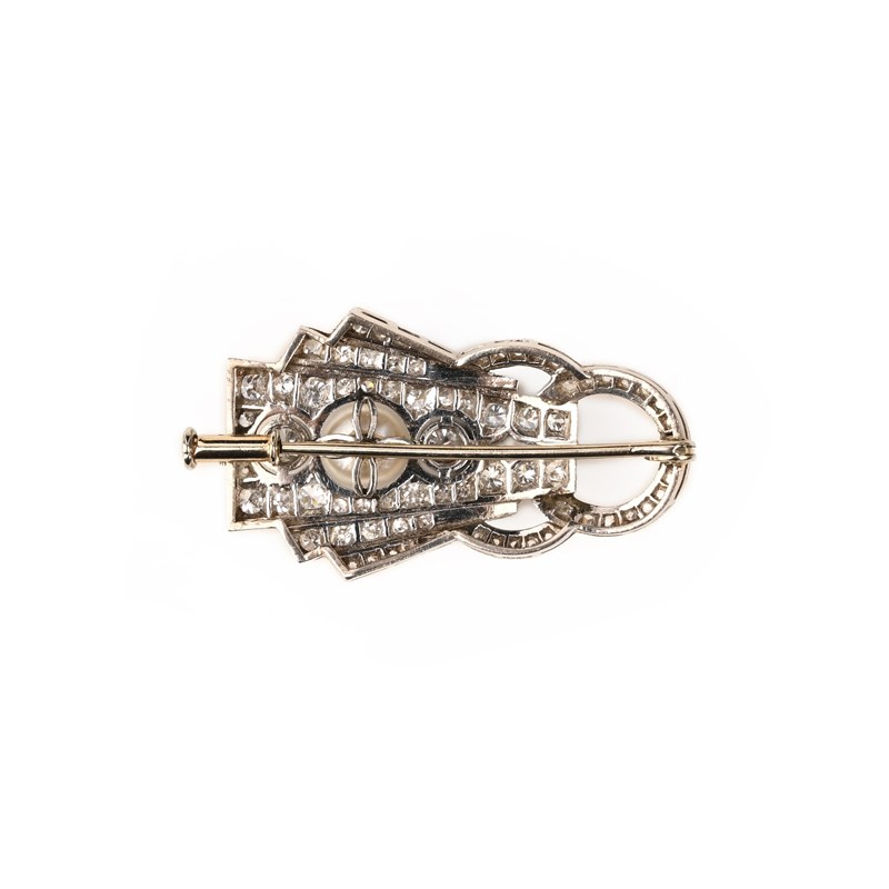 AN ART DECO PEARL AND DIAMOND BROOCH