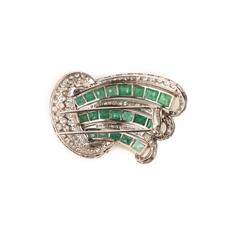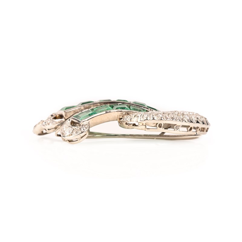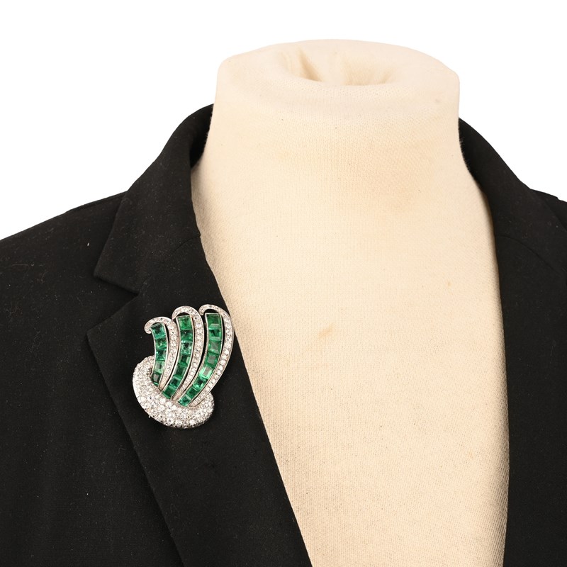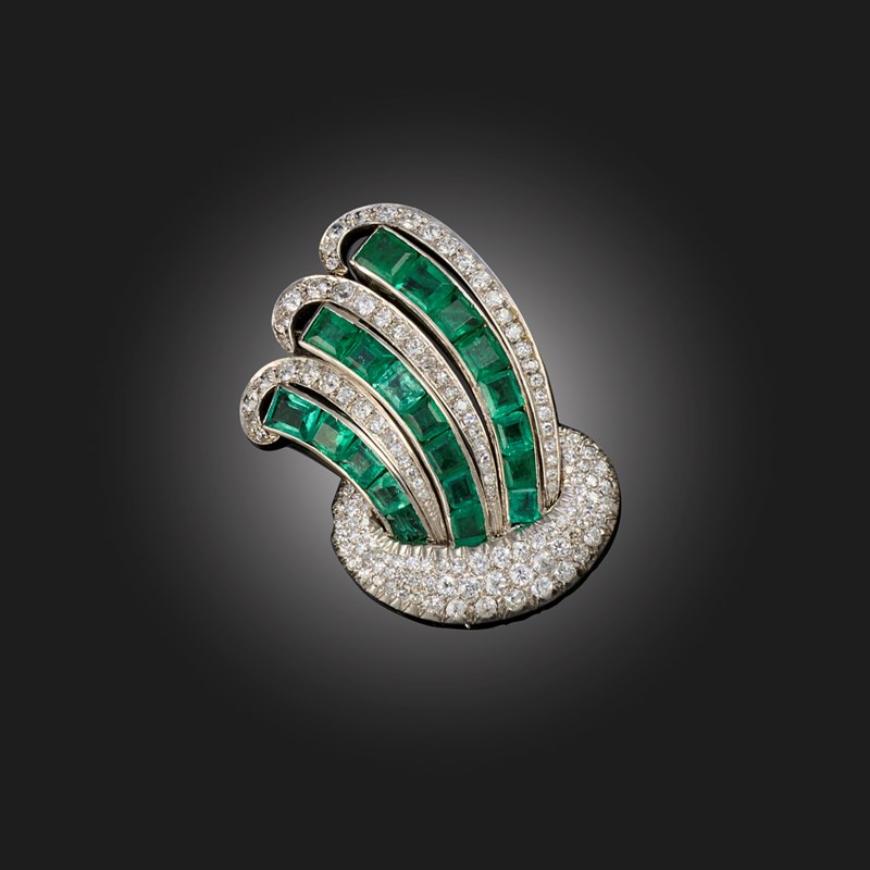 A LATE ART DECO EMERALD AND DIAMOND SPRAY BROOCH
